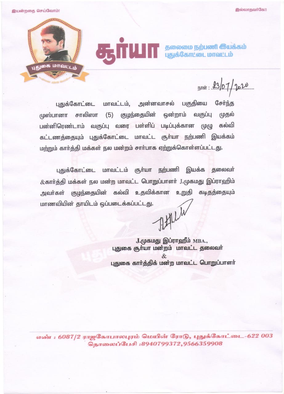 source https://www.vikatan.com/news/tamilnadu/pudukottai-surya-fans-helps-child-with-taking-care-of-educational-expenses
