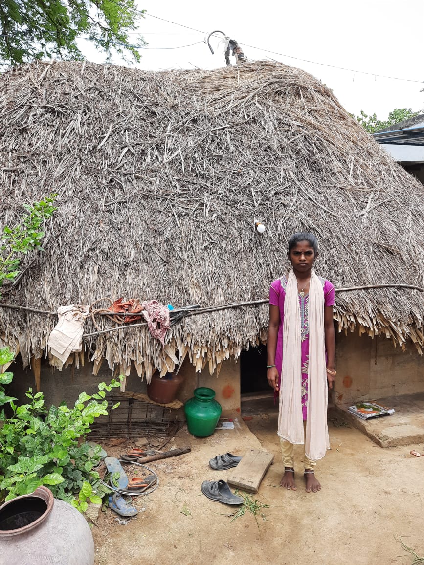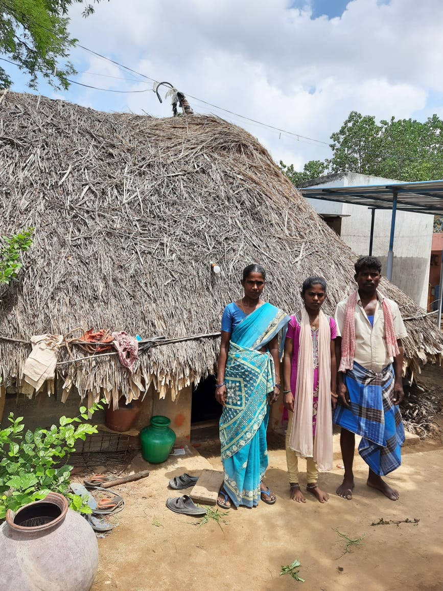 ``அம்மா, அப்பா ரெண்டு பேரும் கூலி வேலை செய்றாங்க. கூடப்பிறந்தவங்க ரெண்டு அக்காங்க. நல்லா படிப்பாங்க. குடும்ப சூழ்நிலை. நல்ல மார்க் எடுத்தும், சாதிச்சான்றிதழ் கிடைக்காததால் படிக்க வைக்கமுடியல. ப்ளஸ்டூவுக்கு பிறகு கல்யாணம் கட்டிக் கொடுத்துட்டோம். எனக்கு காலேஜ் போய் படிக்கணுங்கிறது கனவு. ஏழாம் வகுப்பு படிக்கும் போதிலிருந்தே வீட்டுல சொல்லிட்டே இருப்பேன். எங்க குடிசையில புத்தகம் வைக்க கூட இடம் கிடையாது. மழை வந்தா புத்தகம் முழுக்க நனைச்சு போயிரும்னு துணியை வெச்சு மூட்டை கட்டி, குடை பிடிச்சுட்டு உட்கார்ந்திருப்பேன்.