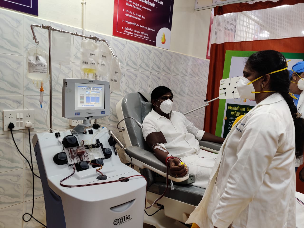 பிளாஸ்மா தெரபியின் அவசியத்தைக் கருத்தில்கொண்டு தமிழக அரசின் சார்பில் சென்னை ராஜீவ்காந்தி அரசு மருத்துவமனையில் பிளாஸ்மா வங்கி 2.34 கோடியில் அமைக்கப்பட்டுள்ளது. அமைச்சர் விஜயபாஸ்கர் இதை நேற்று முன்தினம் (22.7.2020) திறந்து வைத்தார். இதில் முதல் நபராக பிளாஸ்மா தானம் செய்தவர் கொரோனா தொற்று ஏற்பட்டு குணமடைந்த பரமக்குடி தொகுதி அ.தி.மு.க எம்.எல்.ஏ சதன் பிரபாகர். இவர் பிளாஸ்மா தானம் அளித்த பிறகு கலந்துகொண்ட செய்தியாளர் சந்திப்பில், "கொரோனாவிலிருந்து குணமடைந்தவர்களில் தகுதியானவர்கள் தாங்களே முன்வந்து பிளாஸ்மா தானம் அளிக்க வேண்டும்" என்று கேட்டுக்கொண்டுள்ளார்.