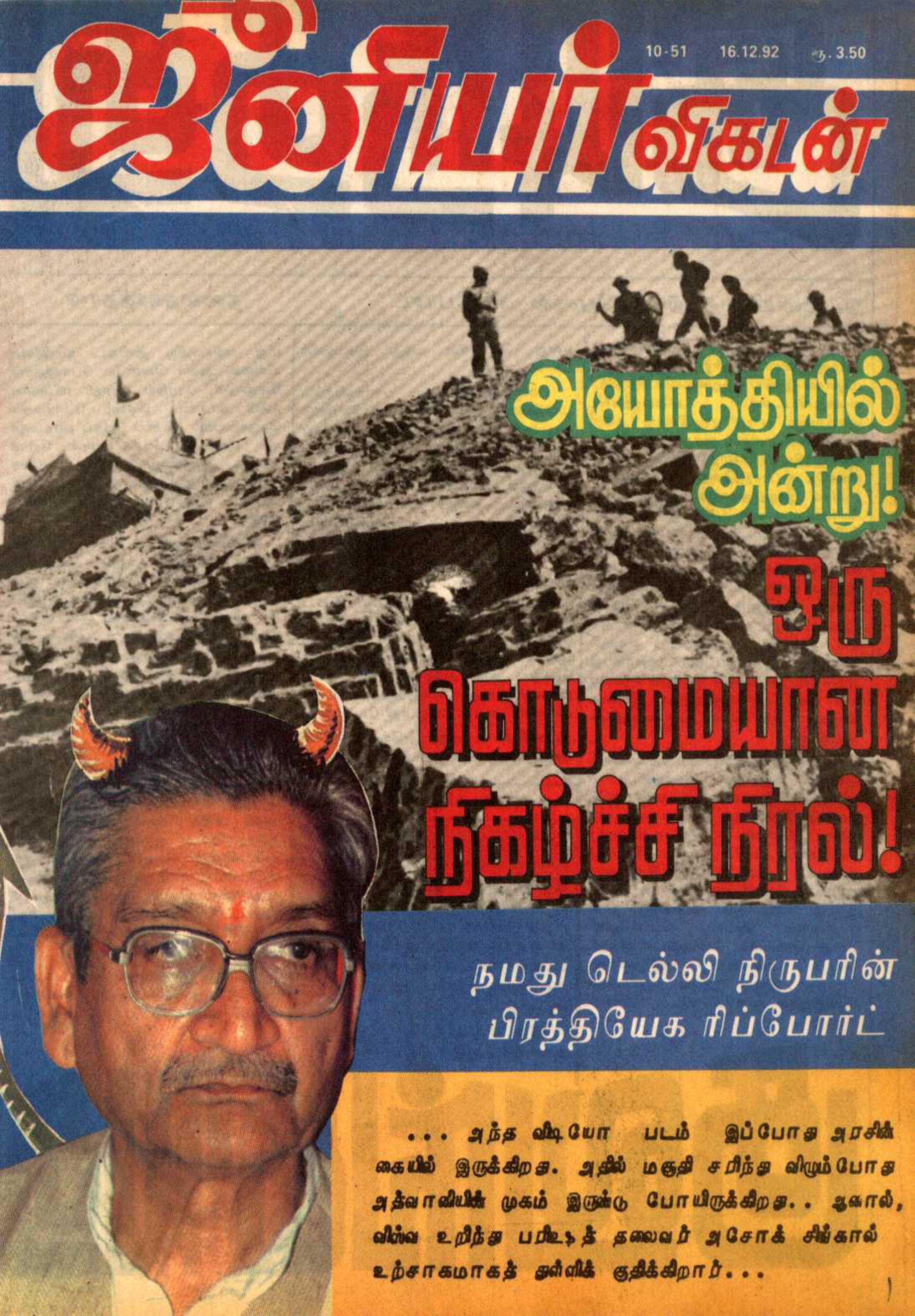 * டிசம்பர் 6, கரசேவகர்களால் பாபர் மசூதி முற்றிலுமாக இடிக்கப்பட்டது.