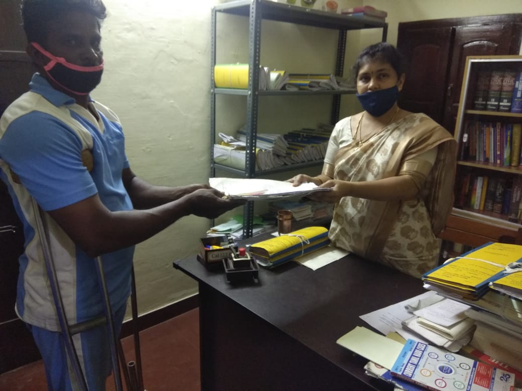 விபத்து வழக்கில் எனக்கு உரிய இழப்பீடு கிடைக்காததை அறிந்த மதுரை இலவச சட்டமையத்தை சேர்ந்த வழக்கறிஞர்கள், உதவி செய்து என்னை மீண்டும் இழப்பீடு கேட்டு மனுதாக்கல் செய்ய வைத்தனர். அதற்கான ஆவணங்களை வக்கீலிடம் கொடுப்பதற்காக ஒற்றை காலில் சைக்கிளில் மதுரைக்கு செல்ல முடிவெடுத்தேன்.