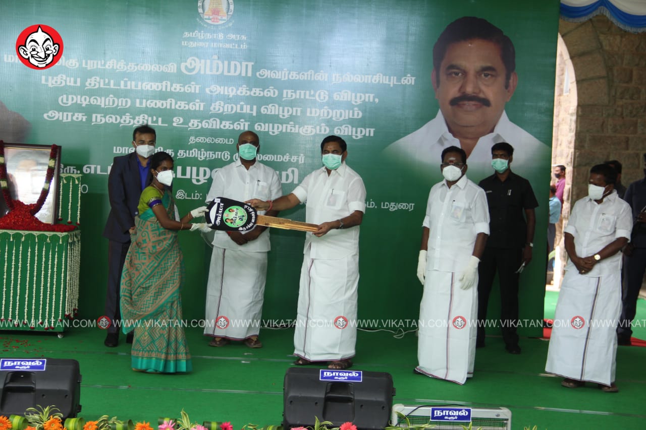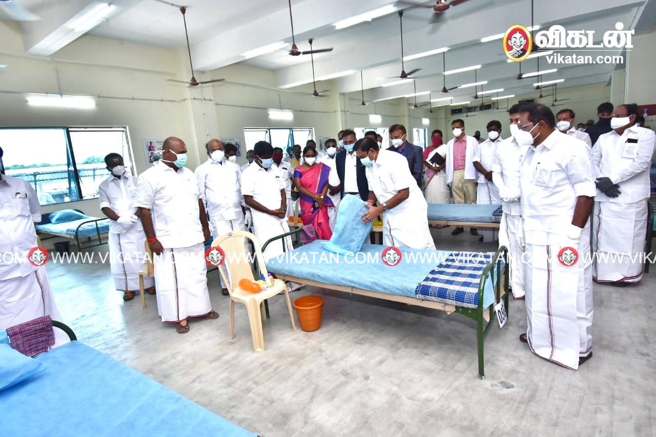 பல்வேறு திட்டப்பணிகளை தொடங்கி வைக்கவும், கொரோனா பரவலைத் தடுக்க எடுக்கப்பட்ட நடவடிக்கைகளை ஆய்வு செய்யவும் மதுரைக்கு வருகை தந்த முதலமைச்சர் எடப்பாடி பழனிசாமி, 900 படுக்கை வசதிகள் கொண்ட கோவிட் கண்காணிப்பு மையத்தை திறந்து வைத்தார். கலெக்டர் அலுவலகத்தில் நடந்த ஆய்வு கூட்டங்களுக்கு பின் மாலையில் செய்தியாளர்களைச் சந்தித்தார்.