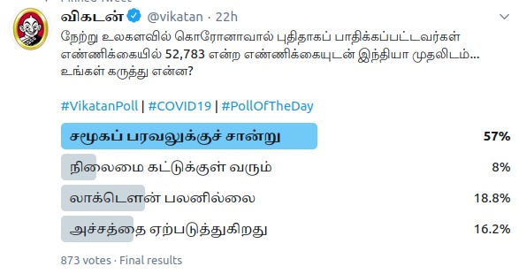 source https://www.vikatan.com/government-and-politics/healthy/vikatan-poll-regarding-the-increase-in-corona-numbers-in-india
