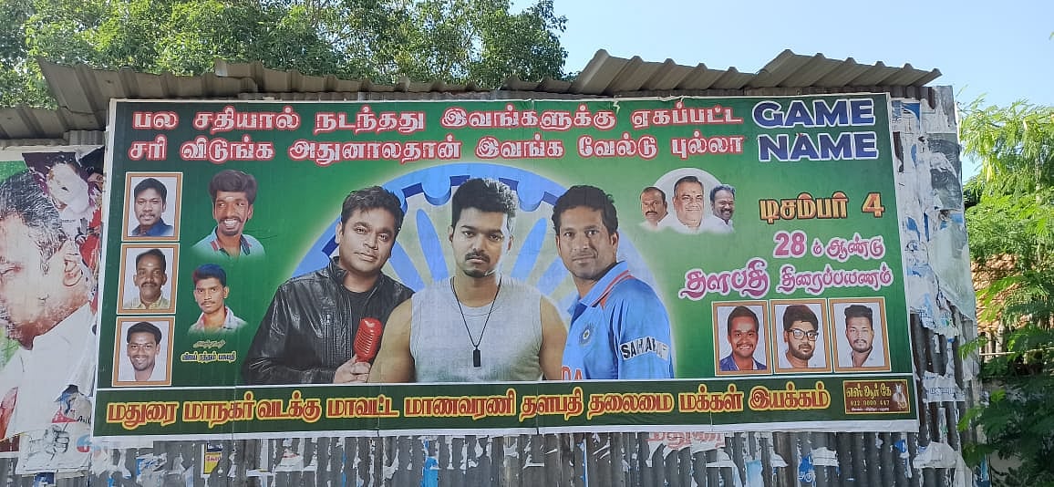 இந்தநிலையில், நடிகர் விஜய்யை கிரிக்கெட் வீரர் சச்சின் டெண்டுல்கர், ஆஸ்கர் நாயகன் ஏ.ஆர்.ரஹ்மான் ஆகியோரோடு ஒப்பிட்டு மதுரையில் அவரது ரசிகர்கள் போஸ்டர் ஒட்டியிருக்கிறார்கள். அதில்,` பல சதியால் நடந்தது இவங்களுக்கு ஏகப்பட்ட Game.. சரி விடுங்க அதனாலதான் இவங்களுக்கு வேல்டு புல்லா Name'என்ற வாசகம் இடம்பெற்றிருக்கிறது.