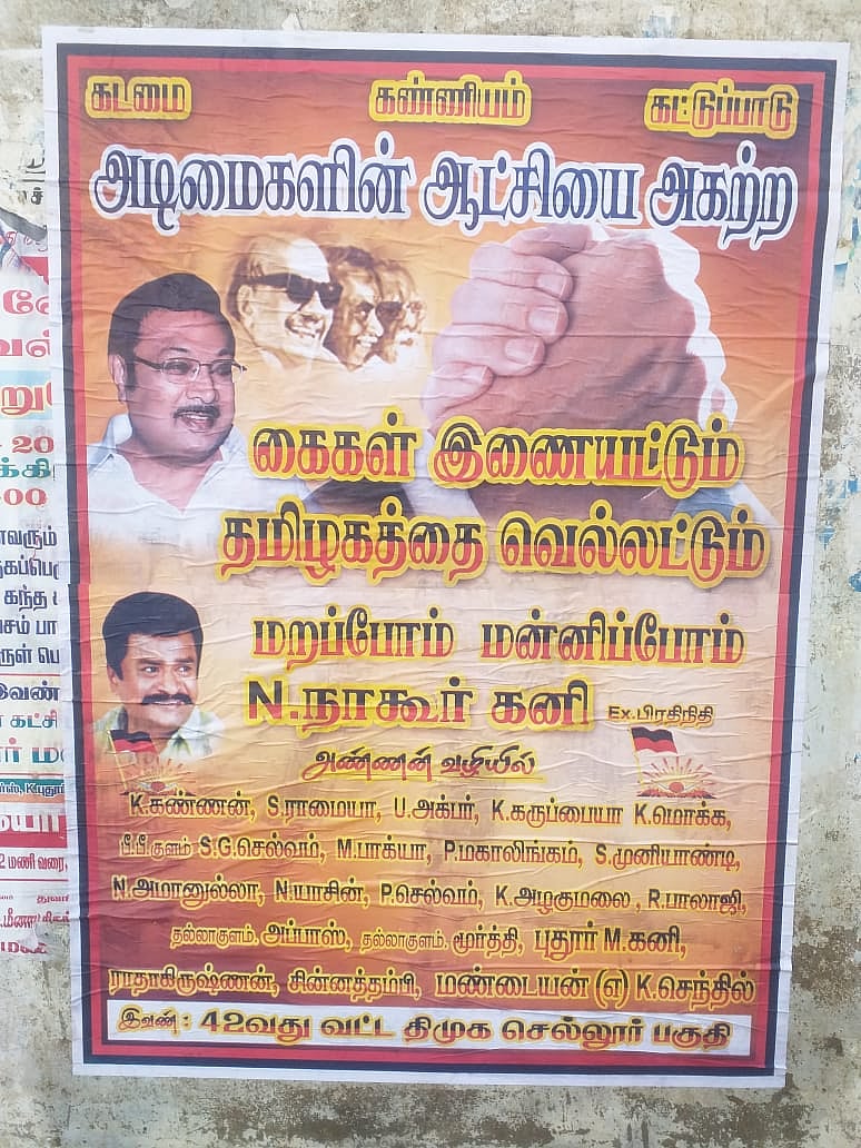 அதேபோல், `அடிமைகள் ஆட்சியை அகற்ற கைகள் இணையட்டும்... தமிழகத்தை வெல்லட்டும்... மறப்போம் மன்னிப்போம்’ என்ற வாசகத்துடன் மு.க.ஸ்டாலின் - மு.க. அழகிரி ஆகியோர் இணைய வேண்டும் என்ற கோரிக்கையுடன் மதுரை தி.மு.க-வினரும் நகர் முழுவதும் போஸ்டர்களை ஒட்டியிருக்கிறார்கள்.