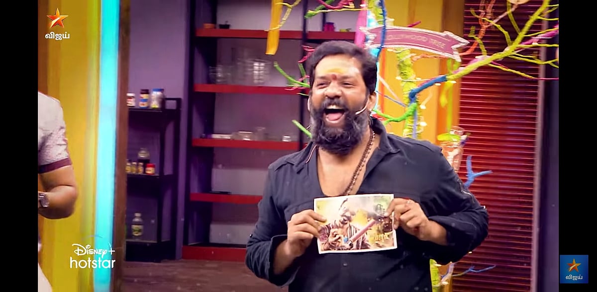 சமைக்கும் முன் இடையூறாக ஒரு நீண்ட குச்சி, செங்கோல் டைப்பில் கொடுக்கப்பட்டது. ‘'உப்புக்கருவாடு ஊற வெச்ச சோறு” பாட்டில் வயிற்றில் ஒரு குச்சியை பேலன்ஸ் செய்தபடி ஆடுவார்களே... அதேப்போல அந்தக் குச்சியை வைத்துக்கொண்டு குக்கும், கோமாளியும் சமைக்க வேண்டும். ஒருவேளை பேலன்ஸ் தவறி விழுந்துவிட்டால், அந்த குக்கும் கோமாளியும் இரண்டு நிமிடங்கள் சமைக்காமல் நிற்க வேண்டும்.