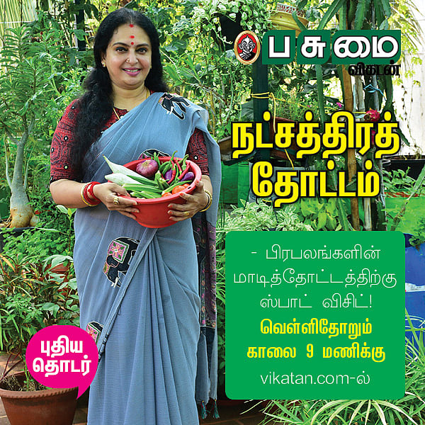 நம் வீடுகளில் மட்டுமல்ல; சினிமா, அரசியல் பிரபலங்கள் மத்தியிலும் வீட்டில் மாடித்தோட்டம் அமைக்கும் வழக்கம் இப்போது வளர்ந்து வருகிறது. அவர்களின் மாடித்தோட்டம் குறித்த தகவல்களைத் தருவதற்காகவும், அவர்களின் தோட்டத்திற்கே உங்களை அழைத்துச் செல்லவும்தான் இந்த தொடர். இந்த முறை இயக்குநரும், நடிகருமான மனோபாலாவின் மாடித்தோட்டம் பற்றிப் பார்க்கலாம்.