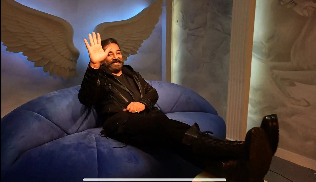 ஓ... என்கிற பிரத்யேக அலறல் இசை பின்னணியில் ஒலிக்க புன்னகைத்தபடி அரங்கத்தில் நுழைந்தார் கமல். கொரானோ காரணமாக கடந்த சீசனில் பார்வையாளர்கள் அனுமதிக்கப்படவில்லை. இம்முறை போதிய இடைவெளியுடன் அமர வைக்கப்பட்டிருந்தனர். “ஐந்து வயதில் குழந்தை நட்சத்திரத்துக்கான ஜனாதிபதி விருது பெற்றேன்” என்று ஐந்து என்கிற எண்ணிக்கைக்கு மறுபடியும் லிங்க் தந்தார் கமல். “இப்பவும் நான் மக்கள் பிரதிநிதிதான்; உங்கள் நான்தான்’’ என்று தனது சிக்னேச்சர் வார்த்தைகளை சொல்லத் தவறவில்லை.