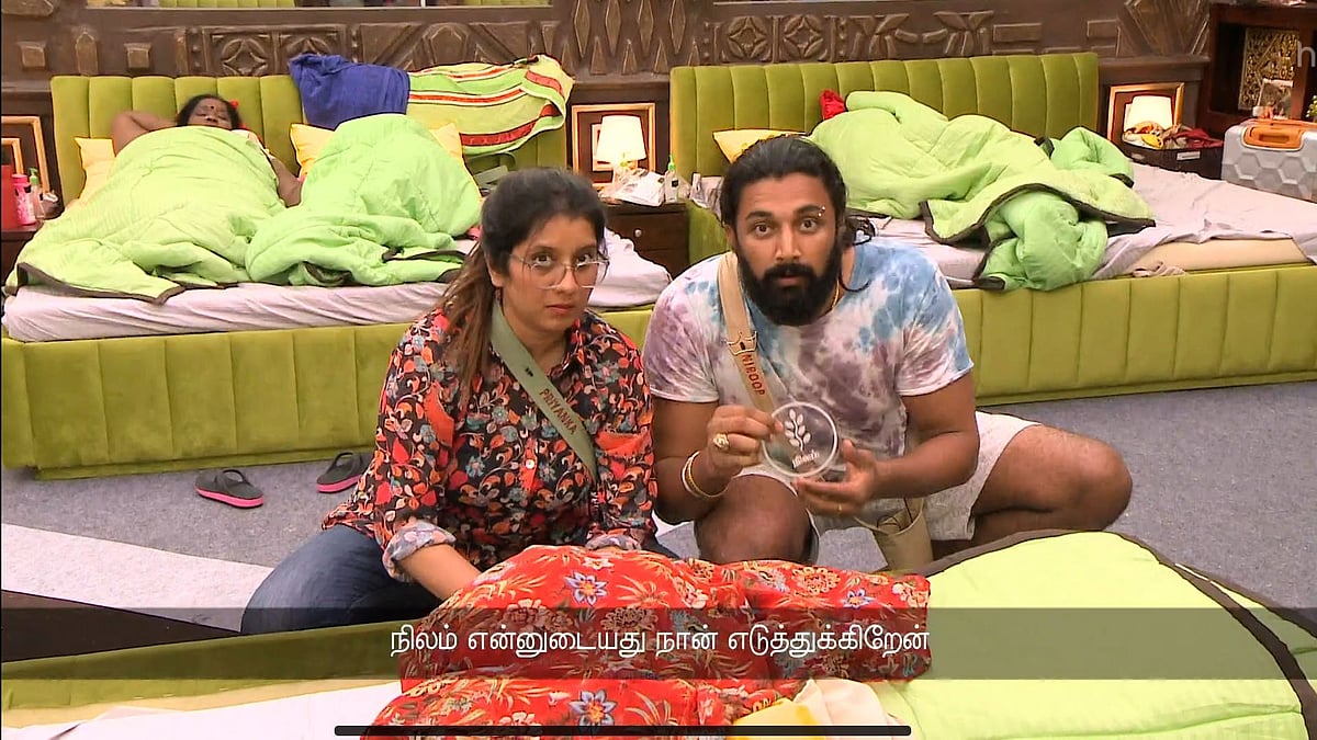 பாவனி, தாமரை ஆகியோரிடம் சென்று மூளைச்சலவை செய்து அவர்களின் நாணயங்களை வாங்கி தன்னுடையதாக கேமராவில் காட்டி உரிமை கோரிக் கொண்டார் நிரூப். “கவலைப்படாதீங்க… அந்தச் சொத்தை உங்க பேருக்கே மறுபடியும் ரிஜிஸ்டர் பண்ணிடுவேன். என்னை நம்புங்க. நான்தானே உங்களுக்கு எடுத்துக் கொடுத்தேன். மெஜாரிட்டி யாருன்னு தெரிஞ்சாகணும். அதுக்குத்தான் இந்த கேம்” என்பது நிரூப்பின் விளக்கம். (ஏதாவது புரியுதா?!).