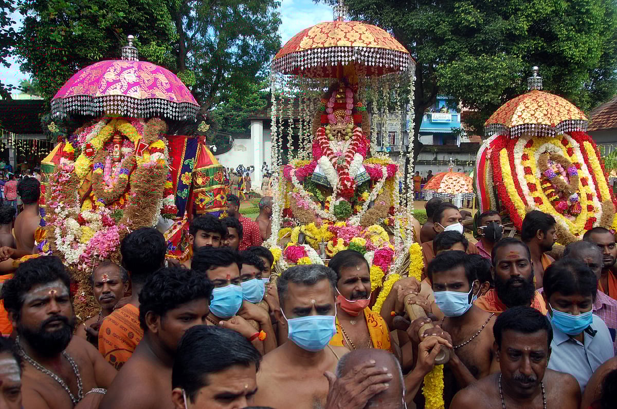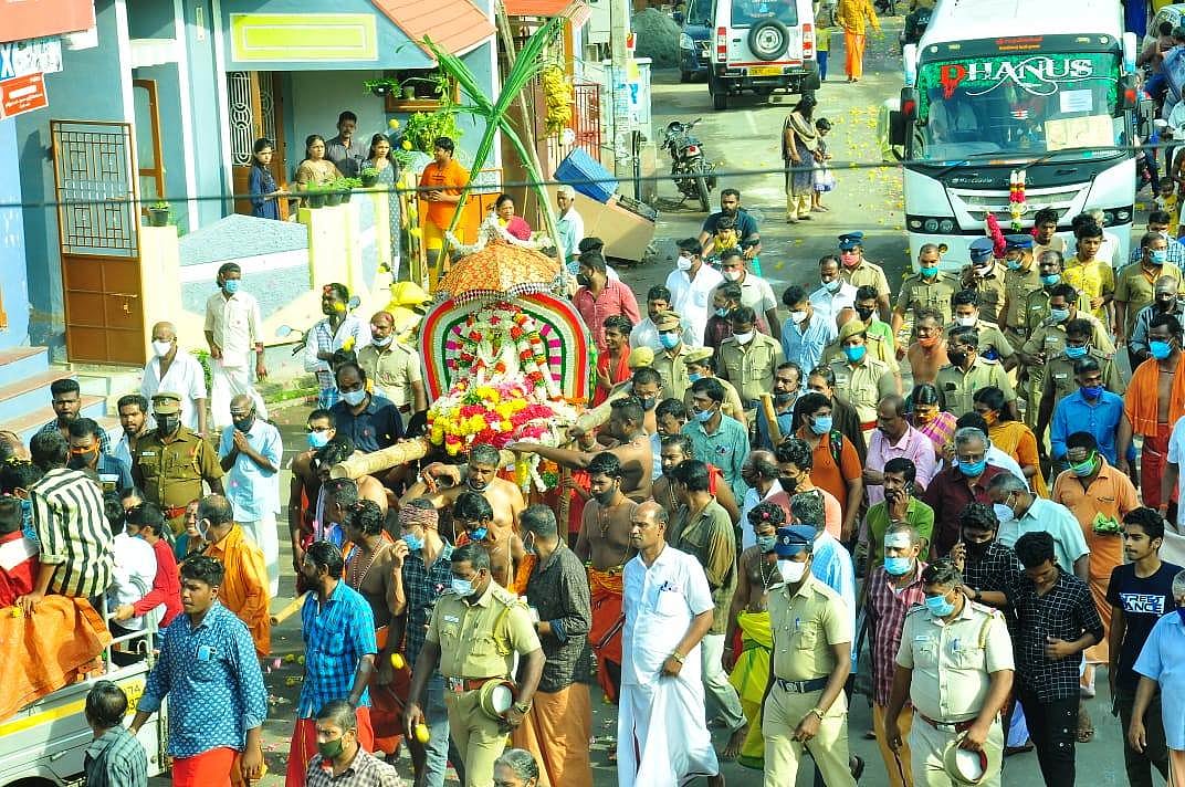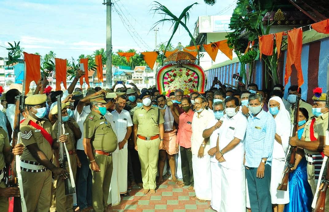 பக்தர்கள் புடைசூழ பத்மநாபபுரம் அரண்மனைக்கு வருகை தரும் சுவாமி ஊர்வலம்.