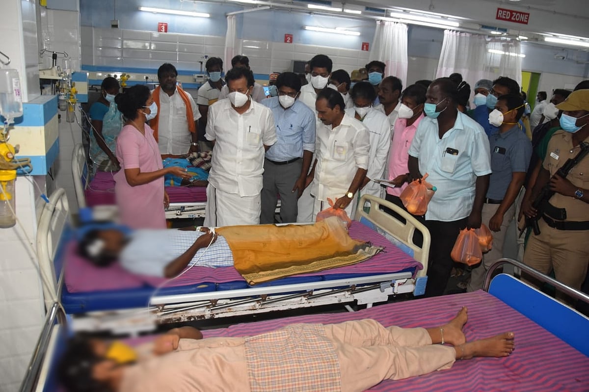 இந்தநிலையில், மாவட்ட எம்.எல்.ஏ-க்கள், மாவட்ட ஆட்சியருடன் நேற்று (07.12.2021) மாலை முண்டியம்பாக்கம் அரசு மருத்துவமனைக்கு நேரில் சென்ற அமைச்சர் பொன்முடி, காயமடைந்த மாணவ, மாணவிகள் மற்றும் பொதுமக்களை பார்த்து ஆறுதல் கூறியிருக்கிறார்.
