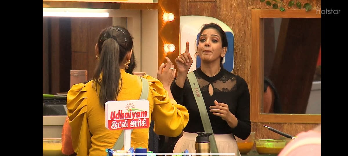 ஆண்களின் கதை இப்படி. ஆனால் இரண்டு பெண்களை ஒன்றாக உட்கார வைத்தாலே அதிலிருந்து நூறு ஃபுட்டேஜ்களுக்கான வீடியோவை தேற்றி விட முடியும் என்கிற சூட்சுமம் பிக்பாஸிற்கு தெரியும். எனவேதான் ‘பெண்களின் உதவியாளர்’ என்று வில்லங்கமான சட்டவிதியை அமல்படுத்தியிருக்கிறார். எதிர்பார்த்தபடியே இந்த விஷயம் உடனே வெடிக்க ஆரம்பித்தது. அக்ஷரா தன்னுடைய அணி வேலையை செய்யச் சொல்லி பாவனியிடம் கேட்க “உன்னோட பர்சனல் வேலையை மட்டும்தான் செய்யணும்னு ரூல் சொல்லுது” என்று சட்டவிதியின் இடைவெளிக்குள் தப்பிக்க முனைந்தார் பாவனி. “சும்மா கேட்டுப்பார்த்தேன். நீ செய்யறியான்னு செக் பண்ணிப் பார்த்தேன். அதுக்கே ஏன் இவ்ள சூடாவுறே?” என்று பின்வாங்கினார் அக்ஷரா. பரிசுப் பொருட்கள் வந்தன. பிரியங்காவின் குரல் கூட இப்போது சற்று ஓய்ந்து விட்டது. ஆனால் அதை ஈடுகட்டும் வகையில் அக்ஷராவின் டெஸிபல் உயர்ந்திருக்கிறது. கான்வென்ட் பெண் மாதிரி “ஹே..” என்று கத்திக் கொண்டே அவர் ஓடுகிற சமயங்களில் பல வீடுகளில் தொலைக்காட்சி விரிசல் விட்டிருக்கலாம்.