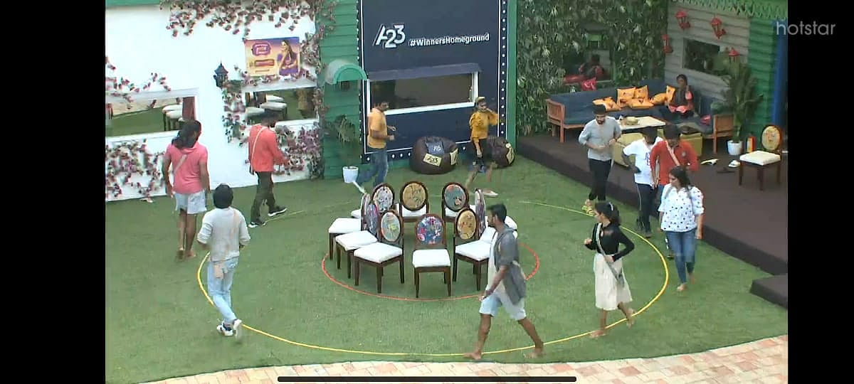 ‘சுத்தி சுத்தி வந்தீக’ என்கிற தலைப்பில் இந்த வாரத்தின் தலைவர் போட்டி நடந்தது. மியூசிக்கல் சேர். இதில் யார் தோற்கிறாரோ, அவர் மற்றவர்களிடம் பேசி தனக்கான இருக்கையை சம்பாதிக்கலாம். விட்டுத் தருபவர் வெளியேறுவார். ‘எப்படியும் பாவனி தன் நாணயத்தைப் பயன்படுத்தி தலைவர் பதவியைப் பிடுங்கப் போகிறார்’ என்பது அனைவருக்கும் தெரிந்திருந்தது. ஏனெனில் நாணயத்தை உபயோகிப்பதற்கான கடைசி வாரம் இதுதான். அதற்கு மேல் நாணயம் செல்லுபடியாகாது.