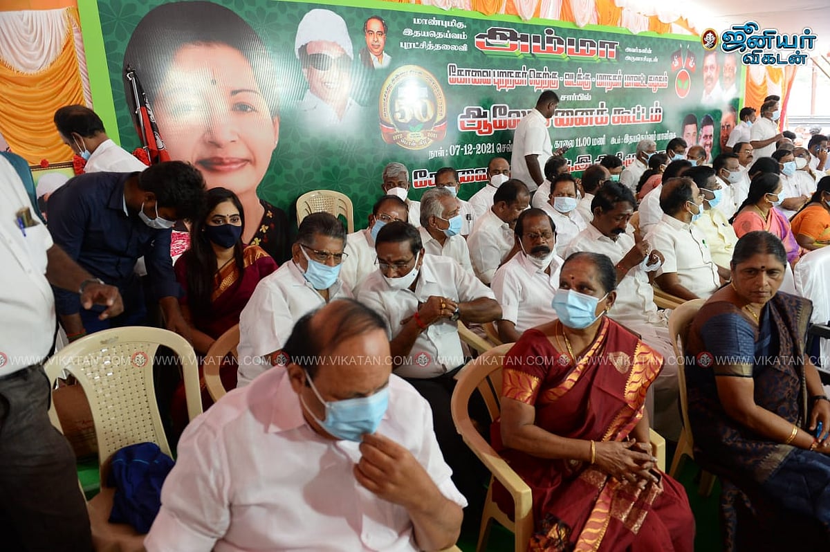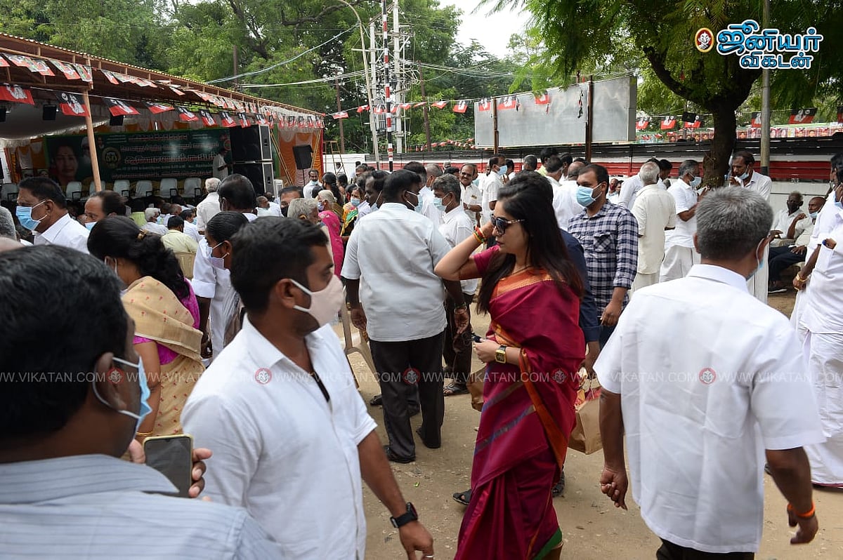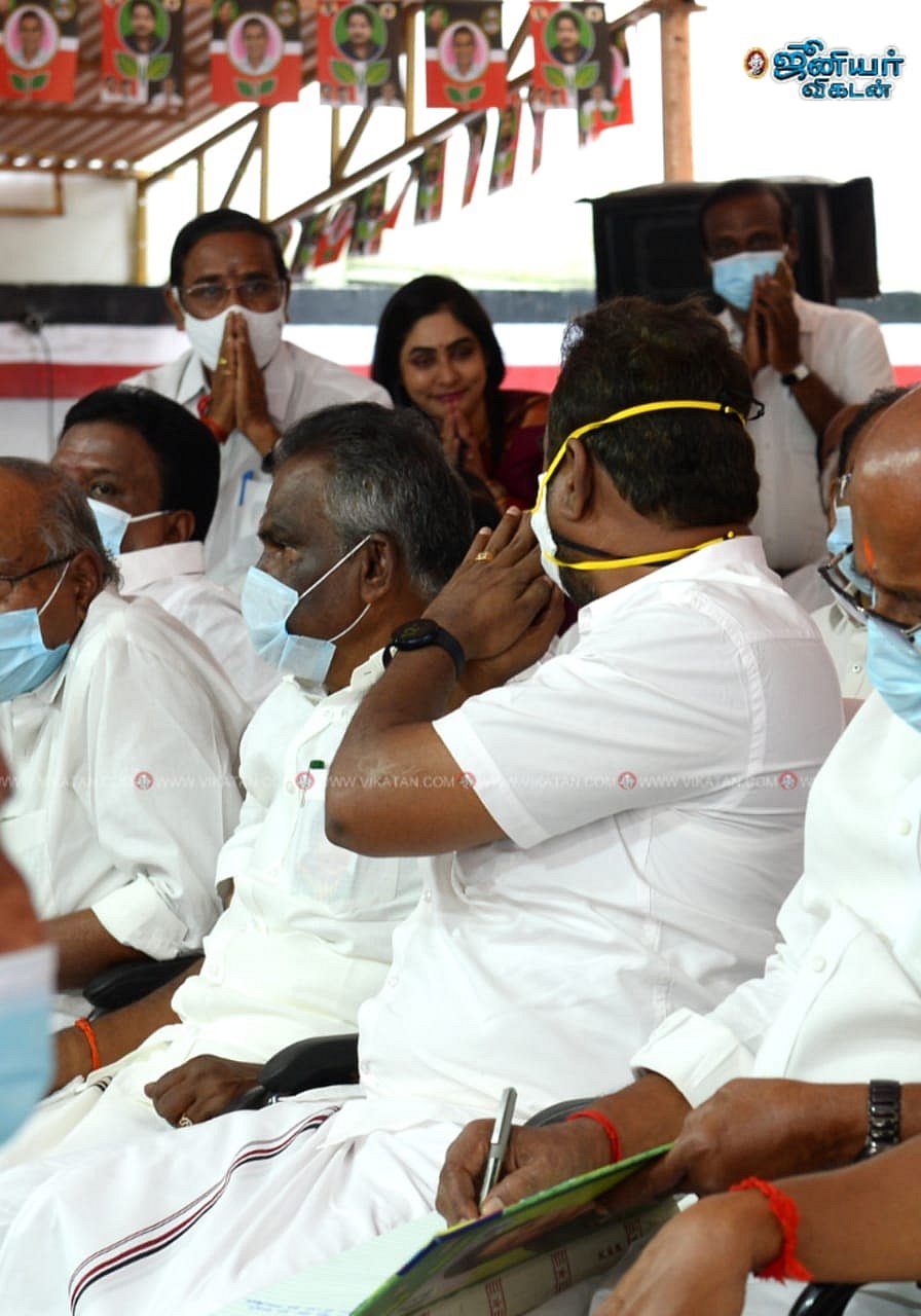 ``இதையெல்லாம் கேக்கணும்ங்க. நாங்கல்லாம் கட்சிக்கு வந்து 30 வருஷம் ஆச்சு. நாங்கதான் சீனியாரிட்டி. நாங்கல்லாம் கீழ உக்காந்துக்கிட்டு இருக்கோம். அந்தம்மா நேத்துதான் கட்சிக்கு வந்துருக்கு. எந்தப் பொறுப்புலயும் இல்லை. ஆனா, மேடைல ஏறி உக்காருறாங்க. வசதியானவங்கன்னா மேல உக்கார வெப்பாங்களா? எப்ப வந்தாலும் அந்தம்மா இப்படித்தான் பண்றாங்க.