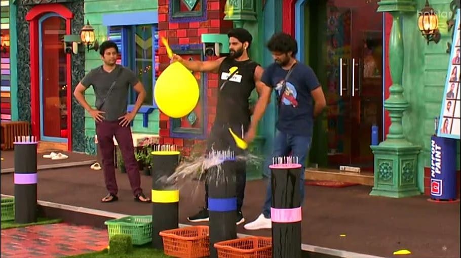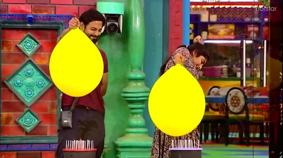 கைவலி தாங்காமல் ரம்யாவின் அனத்தல் அதிகரிக்கவே “முடியலைன்னா போட்டுட்டு போ” என்று ரியோ ஜாலியாக கலாய்க்க ‘சரி...’ என்பது போல் பலூனை போட்டு ஆணியில் உடைத்தார் ரம்யா. "அடிப்பாவி... போடுன்னா போட்டுடுவியா?” என்று அலறினார் ரியோ. ரம்யா வலி பொறுக்க முடியாமல்தான் போட்டிருக்க வேண்டும் ‘அவன் போடுன்னா போட்டுடுவாம்மா... டிவியை ஆன் பண்ணுன்னு சொல்லணும்’ என்கிற ‘எந்திரன்’ படத்தின் காட்சிதான் நினைவிற்கு வந்தது.