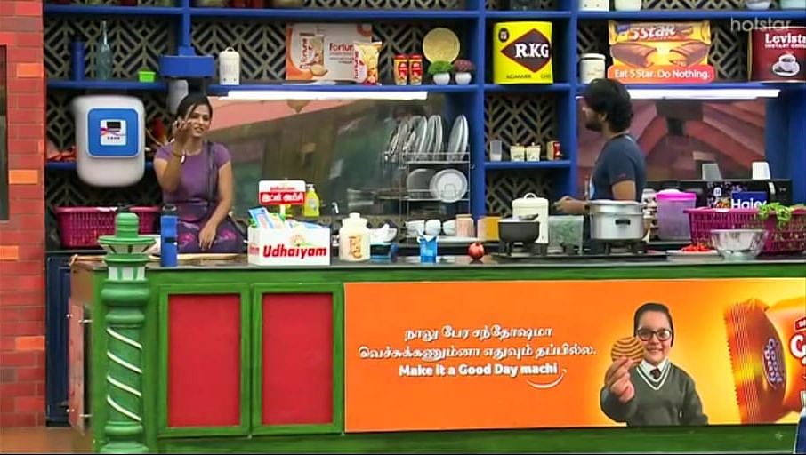 “முன்னாடி கிச்சன் டீம்ல வேலை அதிகம்னு சொல்லுவீங்க. இப்ப ஹவுஸ் கீப்பிங்லதான் வேலை ஜாஸ்தின்னு மாத்திட்டீங்க... நான் இப்ப ஹவுஸ்கீப்பிங் டீம்ல இருக்கிறதால அப்படி மாத்திட்டீங்களா?” என்று கேட்டு கேபியை உதாரணம் காட்ட "நான் அதுக்கும் இதுக்கும் சொன்ன காரணம் வேற. கேபியை அங்க சும்மா கொஞ்சம் வேலை செய்ய விட்டுட்டு கணக்கு காட்டிட்டு இருந்தாங்க. இப்ப ஆளுங்க குறைஞ்சாலும் வீடு அளவு அப்படியேதான் இருக்கு” என்று பொறுமையாக விளக்க ஆரம்பித்தார் ஆரி. ஆனால் பாலாஜிக்கு அது புரியவில்லை.