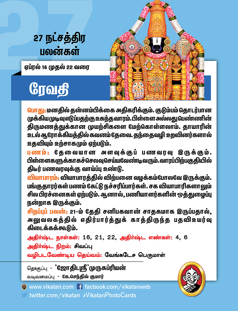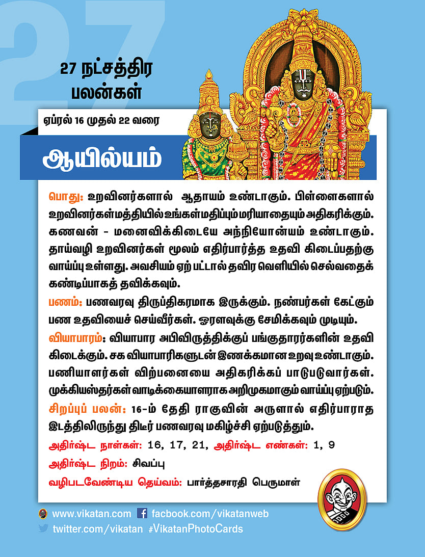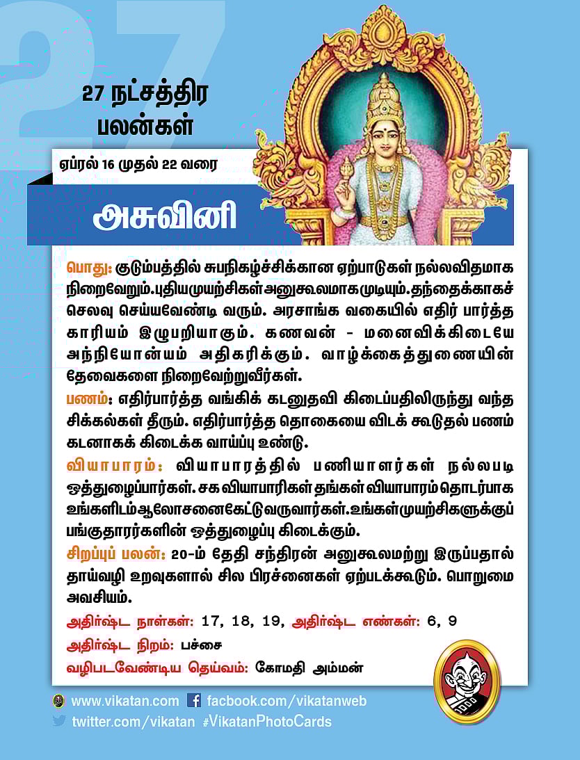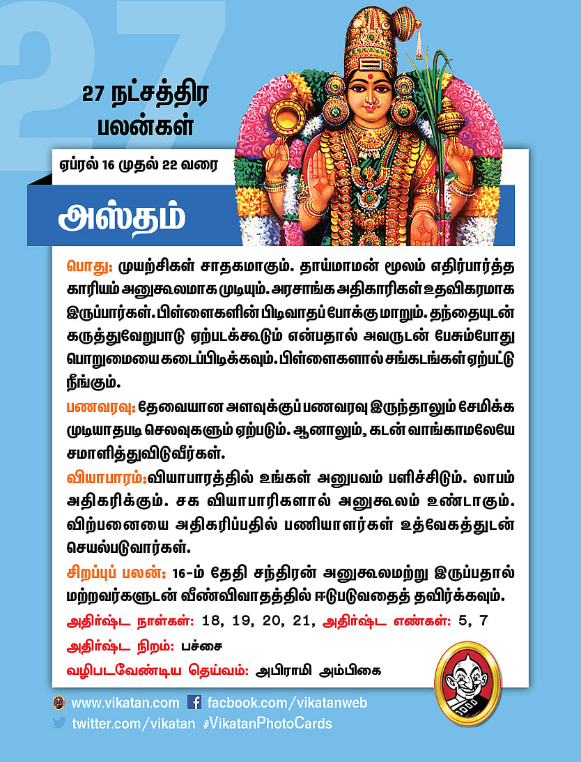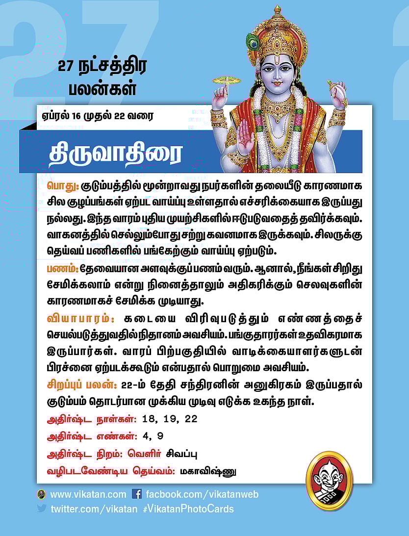 நட்சத்திர பலன்கள்: ஏப்ரல் 16 முதல் 22 வரை! #VikatanPhotoCards