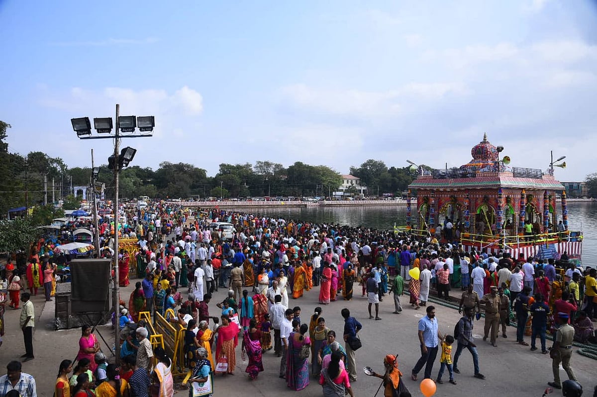 மதியத்துக்கு மேல் மெல்ல வருகின்ற கூட்டம், தெப்பக்குளத்தைச் சுற்றி அமைக்கப்பட்டுள்ள விசாலமான மார்பல் தளத்தில் பட்டறையைப் போட அப்படியே நாலா பக்கமும் திருவிழாவுக்கு வந்ததுபோல் மனிதர்கள் குவியத் தொடங்கிவிடுவார்கள். மாலை 4 மணி முதல் சுற்றியுள்ள கட்டடங்களுக்குள் சூரியன் மறைந்துவிட தெப்பத்திலிருந்து குளிர் காற்று மேலெழும்பி வந்து சுற்றுப்புறத்தைக் குளுமையாக்கும். சுற்றி நடந்து நடந்து தெப்பத்தின் அழகை ரசிப்பவர்களும், பெட்ஷீட் விரித்துப் படுத்துக்கொண்டு ரசிப்பவர்களையும் காணலாம்.